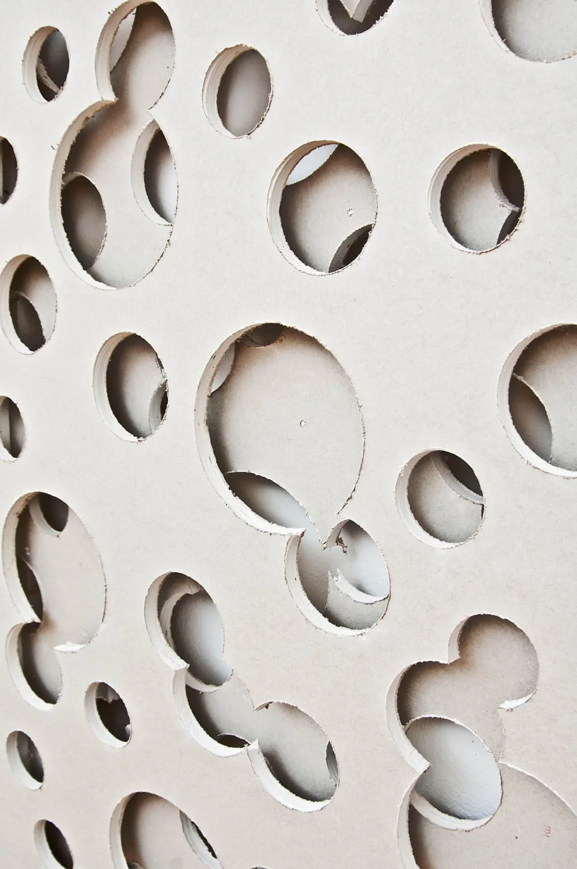 Ricardo Rendon is an artist from Mexico, born in 1970. The exhibition CUMULATIVE ACT EFFECT presents a series of works composed by interventions in different spaces and materials. A perforated sheetrock wall, modified newspapers or wallpapers trimmed and folded in different shapes appear as testimony of work procedures within the exhibition space, turning it into a setting determined by the creative experience, an ambient where the work is presented as a fact and evidence of the creative execution. The works of Ricardo Rendón act as a complex diary where the actions are registered, documented and accumulated. His works are an appendix of construction or destruction practices that enunciate the moment where things happen, forms that propose the action as leitmotiv. Ricardo Rendón proposes an epic that assaults architectures and objects equally.